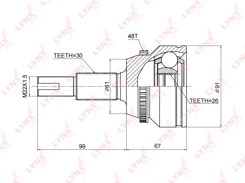 CO-3858A LYNXAUTO ШРУС наружный к-кт!\ Toyota Camry 3.0i/3.3i 01-06/Highlander 3.0i 00-03