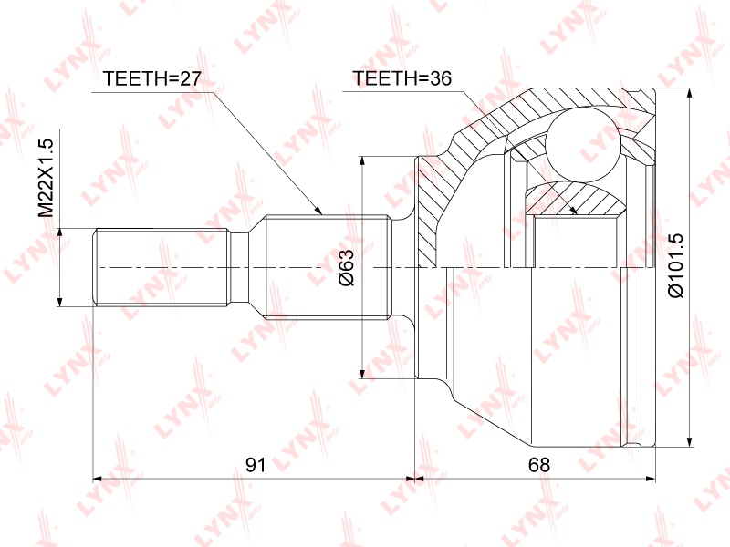 CO-3875 LYNXAUTO ШРУС наружный к-кт! 25297\ Ford Kuga I 2.5/2.0TDCi 08>