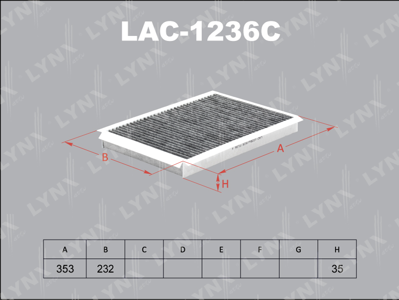 LAC-1236C LYNXAUTO фильтр салона! угольный 353x232x35\ MB Sprinter, VW Crafter all 06>
