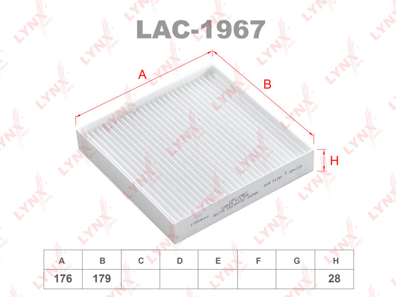 LAC-1967 LYNXAUTO фильтр салона! 176x179x28\ Honda Jazz 1.2/1.4 02>