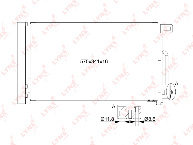 RC0252 LYNXAUTO радиатор кондиционера с осушителем!\ Opel Corsa D 1.0-1.4 06-14, Fiat Punto 1.2-