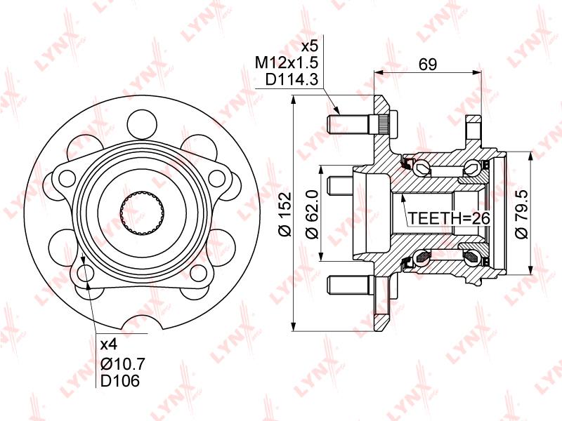 WH-1076 LYNXAUTO Ступица задняя в сборе