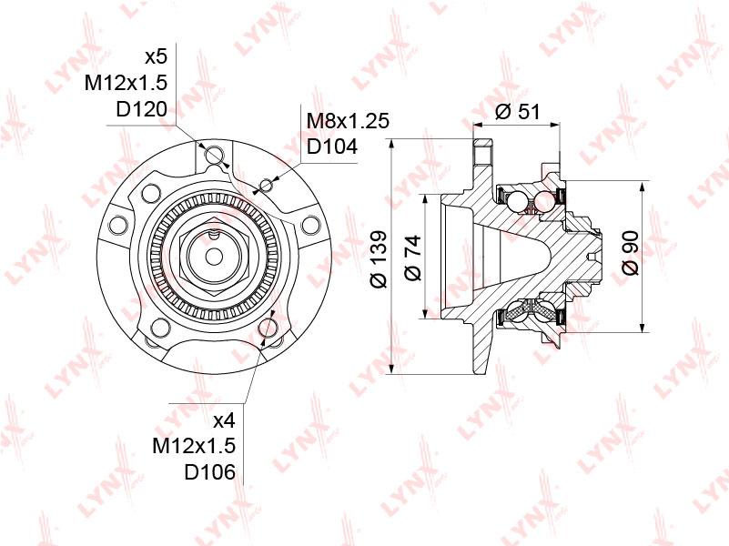 WH-1164 LYNXAUTO Ступица передняя в сборе с ABS