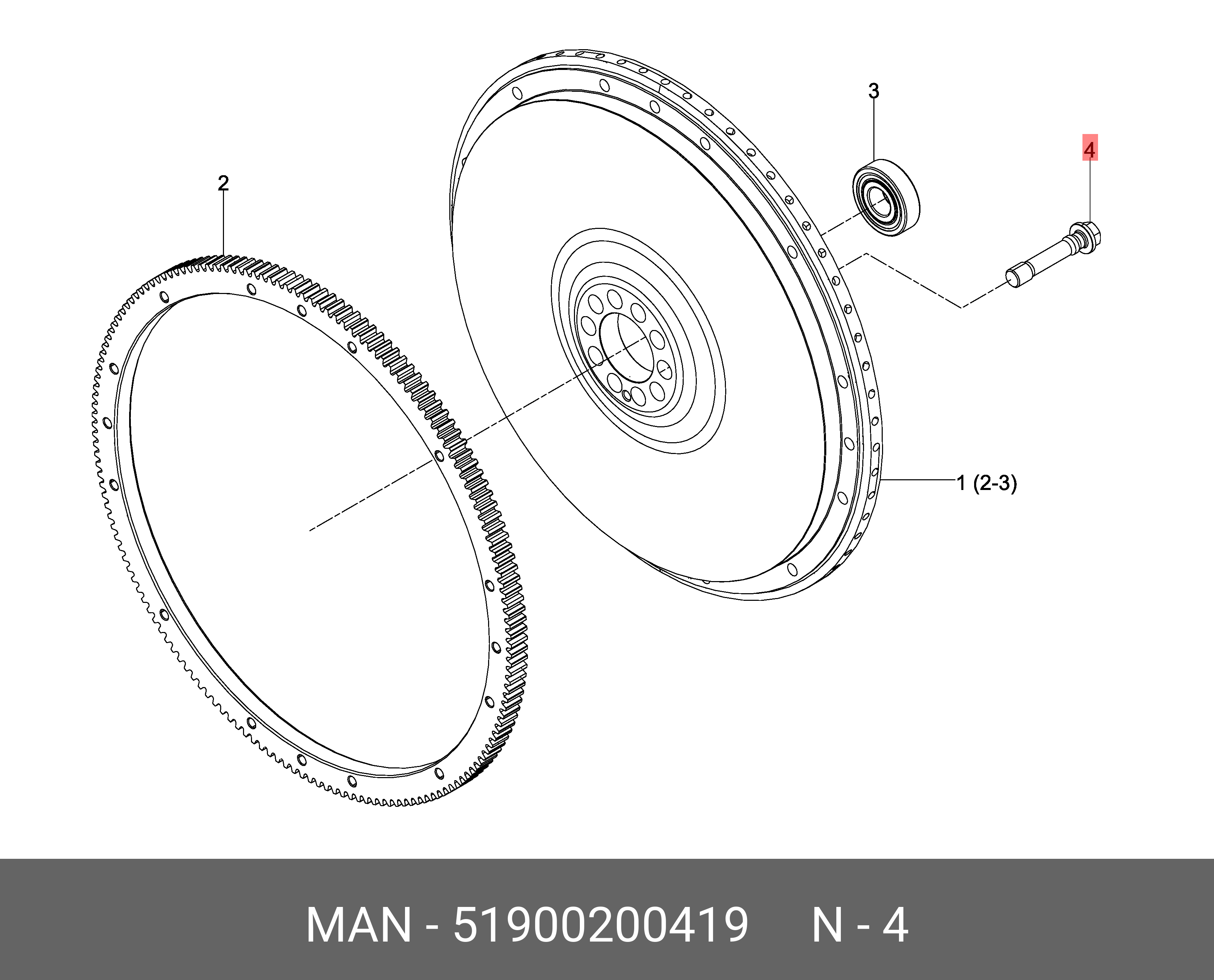 51900200419 MAN Болт MAN крепления маховика (M16x1.5x86) OE