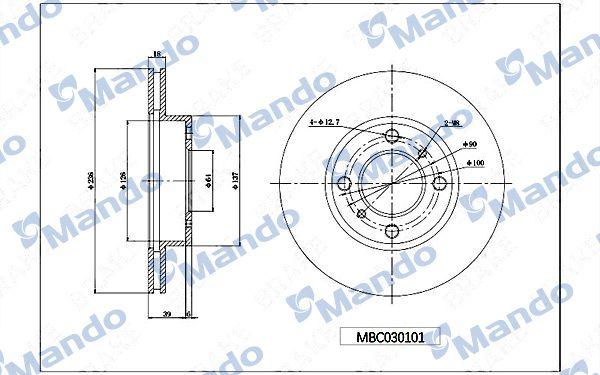 MBC030102 MANDO Диск тормозной PEUGEOT 406 (96-04) передний (1шт.) MANDO