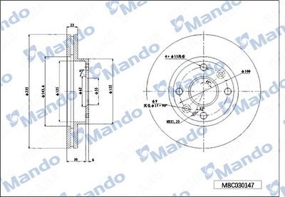 MBC030149 MANDO Диск тормозной HYUNDAI Getz (02-) (R14) передний (1шт.) MANDO