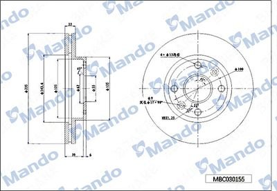 MBC030156 MANDO Диск тормозной HYUNDAI Starex H-1 (98-) передний (1шт.) MANDO