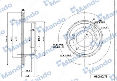 MBC030176 MANDO Диск тормозной HYUNDAI Santa Fe (00-) (4WD) (R16) передний (1шт.) MANDO