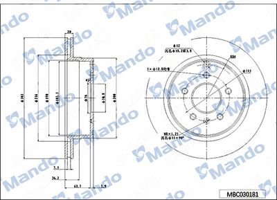 MBC030182 MANDO Диск тормозной HYUNDAI Terracan (01-) задний (1шт.) MANDO