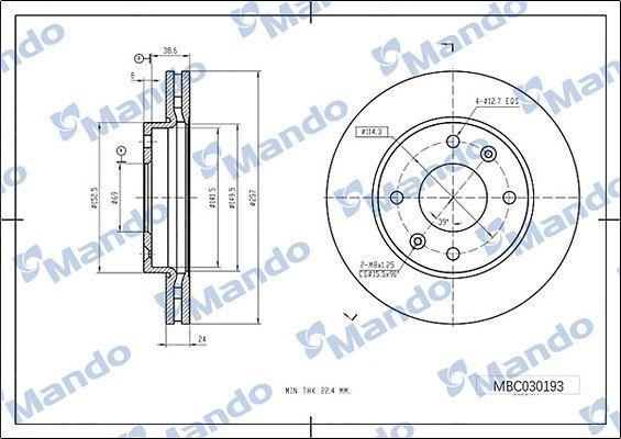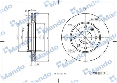 MBC030194 MANDO Диск тормозной HYUNDAI Starex H-1 (05-) (4WD) передний (1шт.) MANDO