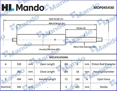 MOP045430 MANDO Амортизатор HYUNDAI Coupe (01-) крышки багажника (1шт.) MANDO