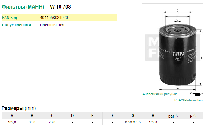 | Производитель | MANN FILTER |