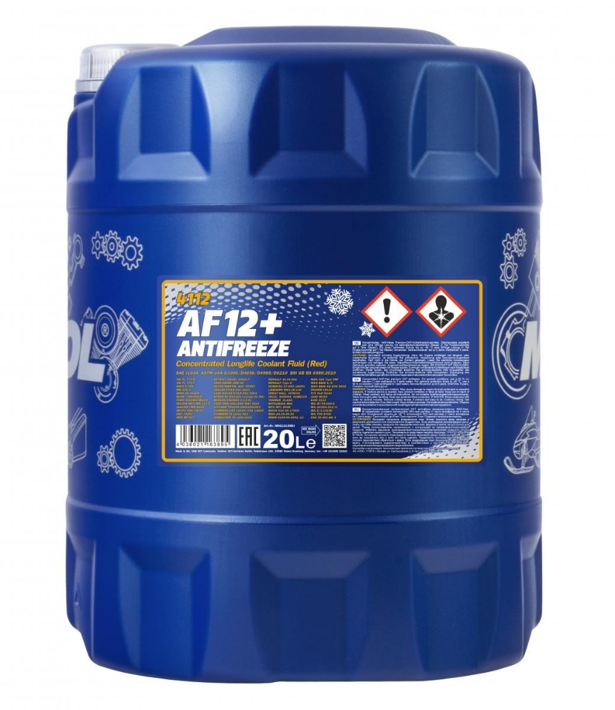 | Наименование | 4112 MANNOL ANTIFREEZE AF12+ LONGLIFE (20L) антифриз! концентрат красный\ |