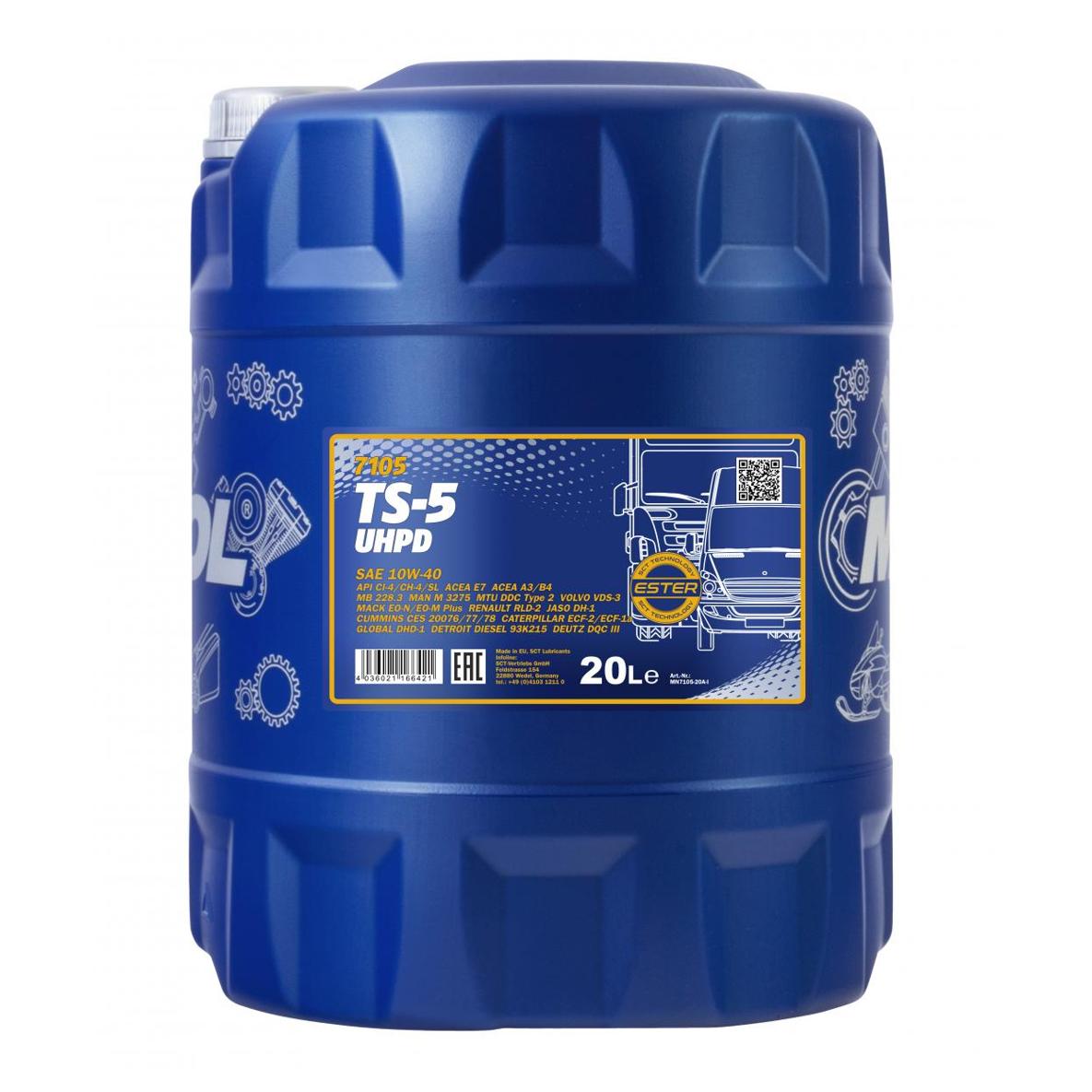 MN7105-20 MANNOL Масло моторное MANNOL 7105 TS-5 UHPD 10W-40 CH-4/CI-4/CI-4+ A3/B4/E7 полусинтети