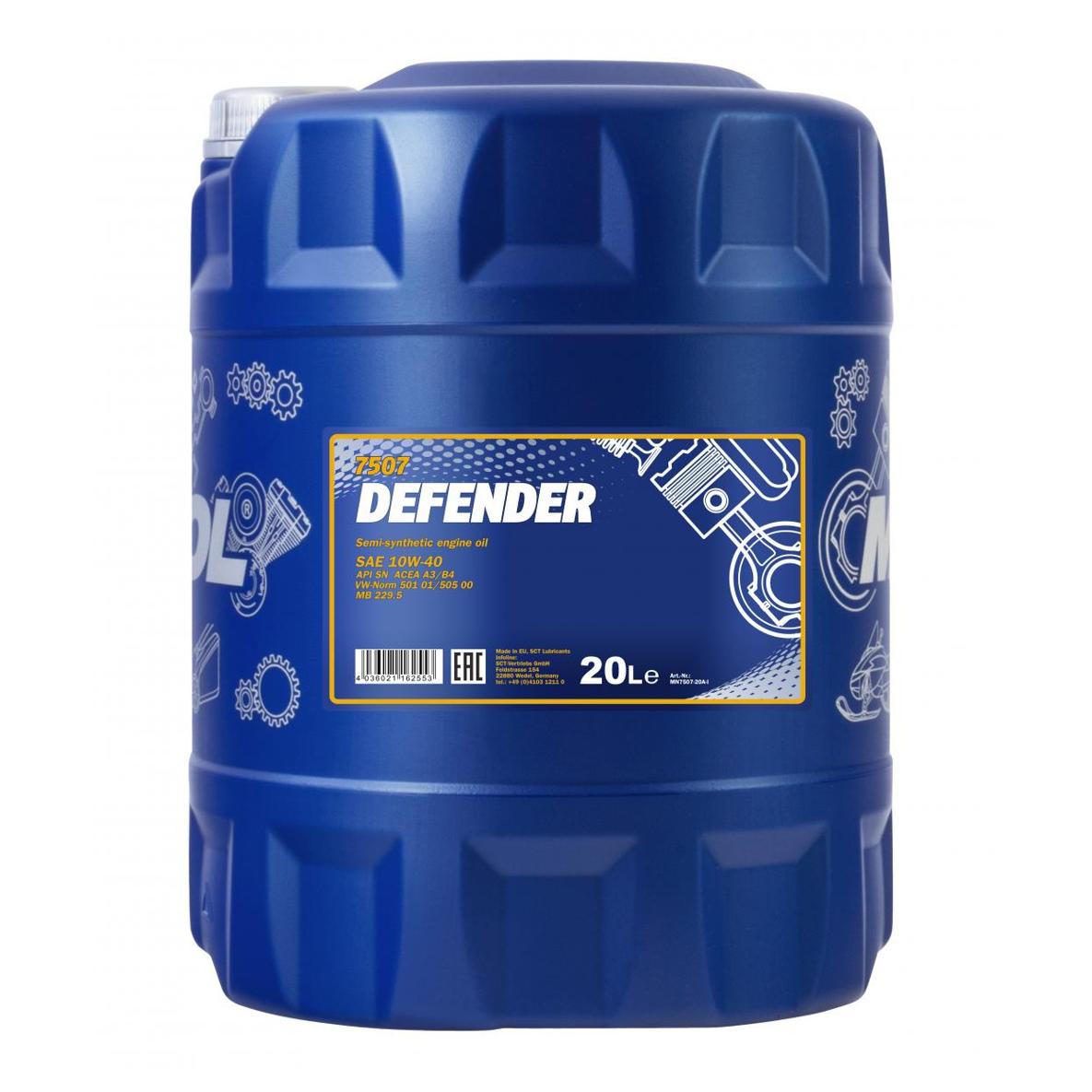 MN7507-20 MANNOL 7507 MANNOL DEFENDER 10W40 20L масло моторное! полусинт.\ API SN, ACEA A3/B4