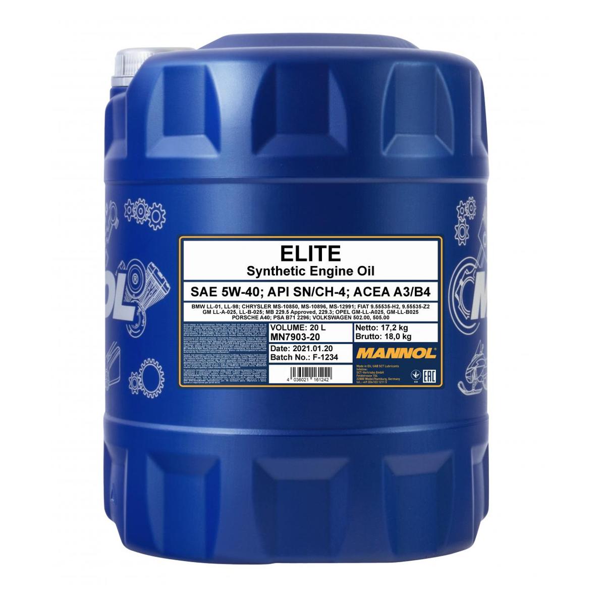 MN7903-20 MANNOL 7903 MANNOL ELITE 5W40 20L масло моторное! синт.\ API SN/CH-4, ACEA A3/B4