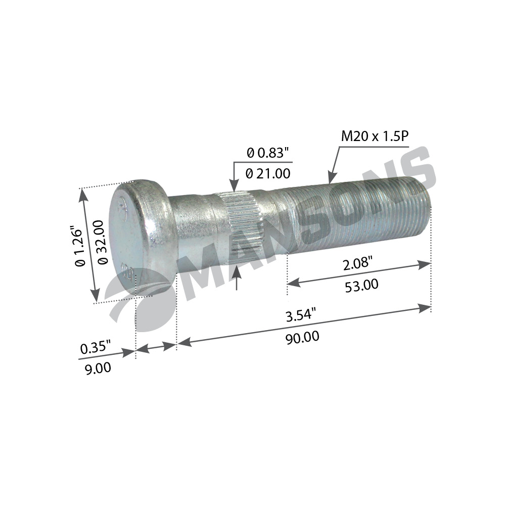 033900527 MANSONS болт ступицы колеса !болт колесный !M20x1.5x89 Volvo FE/FL