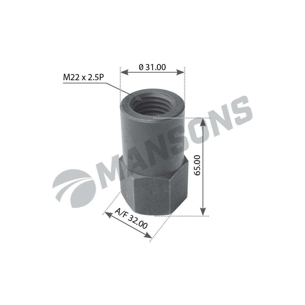 100512 MANSONS Гайка SCANIA стремянки (M22х2.5 h=65мм SW32) MANSONS