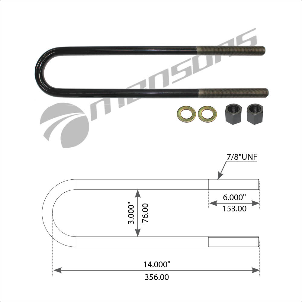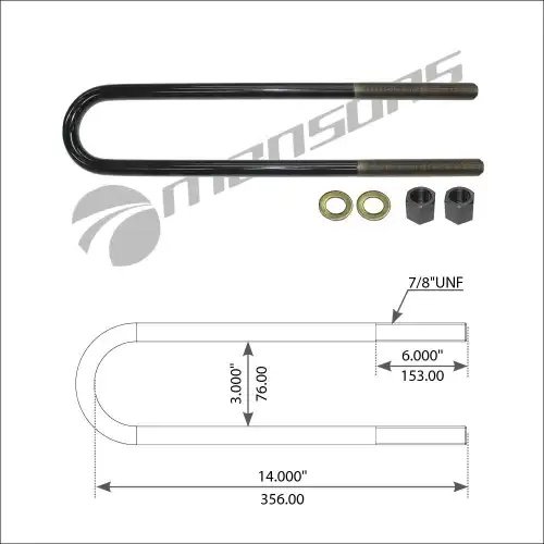 120470 MANSONS стремянка рессоры! задней с гайками и шайбами 7,8'' L356мм\ Volvo VN