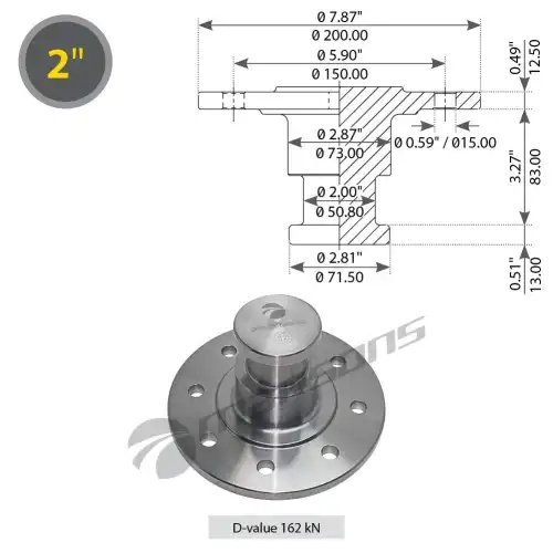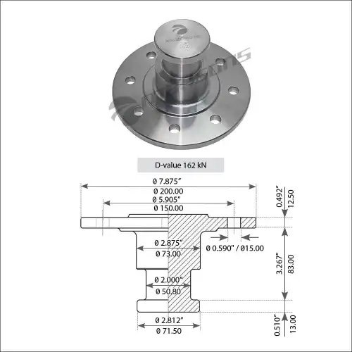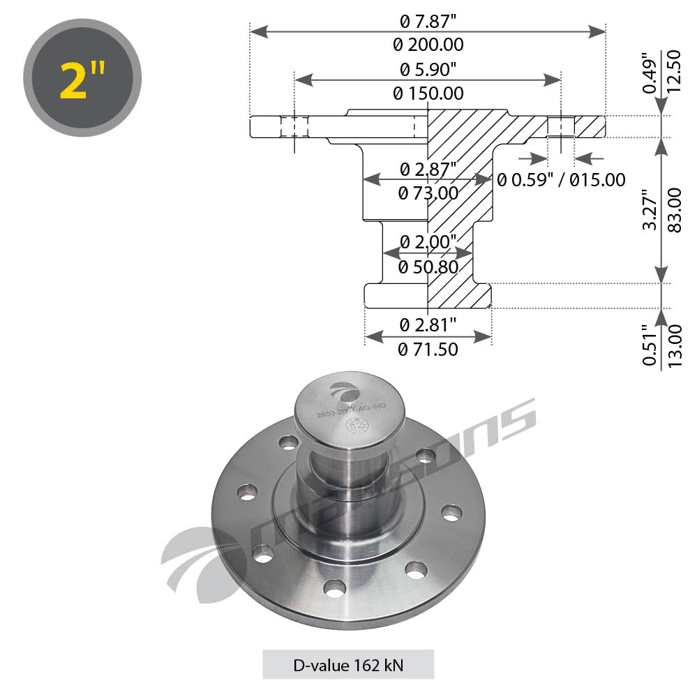 200.203 MANSONS Шкворень полуприцепа 2" без потайголовки без тарелки, без болтов