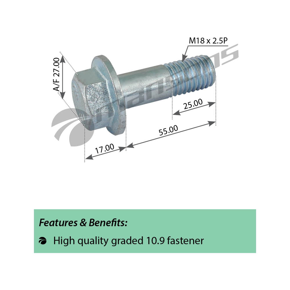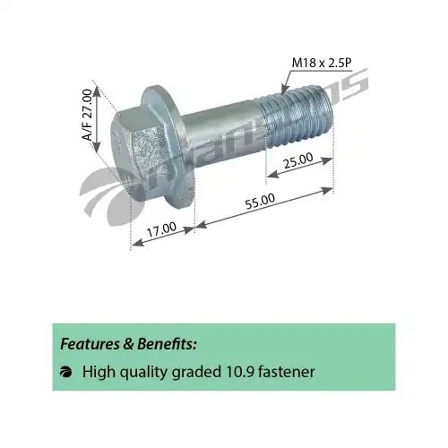 | Наименование | Болт DAF крепления суппорта (M18x2.5x55) MANSONS |