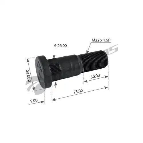 | Наименование | Шпилька колеса FRUEHAUF TRAILOR (М22х1.5х74) MANSONS |