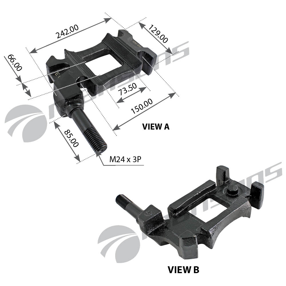 300.606 MANSONS Опорная пластина рессоры левая с крепление под амортизатор; A 92 / B 148 / □ 66