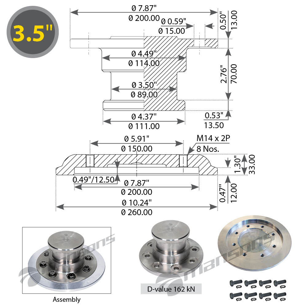 700545 MANSONS шкворень прицепной !3 1/2' в сборе с тарелкой \ Jost KZ 1412