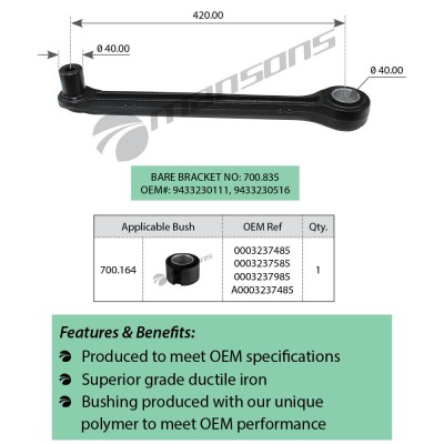 700838 MANSONS Стойка стабилизатора MERCEDES Actros 1831-3243 переднего L=500мм (с втулкой) MAN