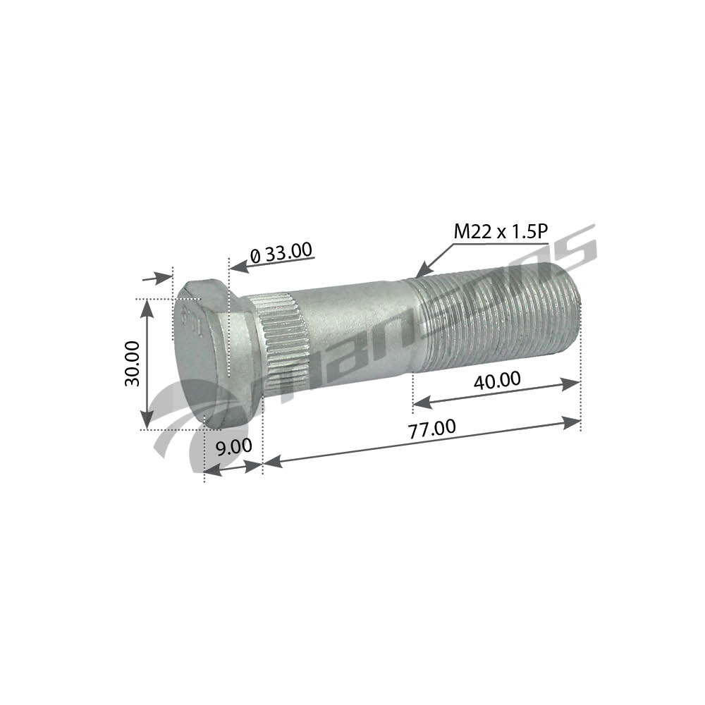 750.015 MANSONS Шпилька колеса IVECO (M22х1.5х77) с шлицами MANSONS