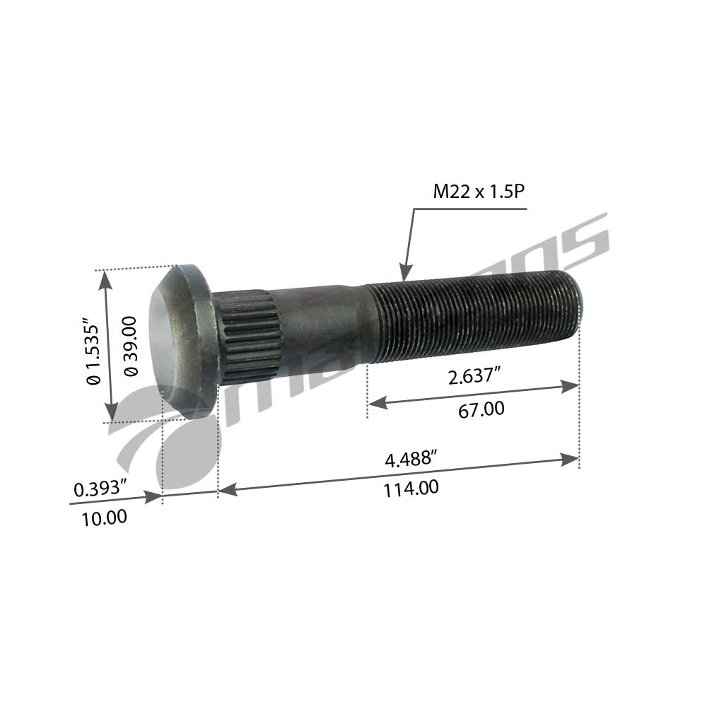 780.254 MANSONS Шпилька колеса [L=114 M22x1.5P l=67] 10шт