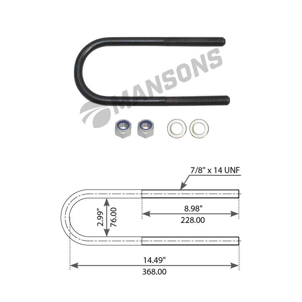 800030 MANSONS стремянка рессоры! задней с гайками и шайбами 7\8''x14 L=370мм\ Volvo VN