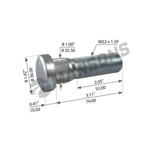 шпилька колеса M22х1,5х89/79-10,9 D=36