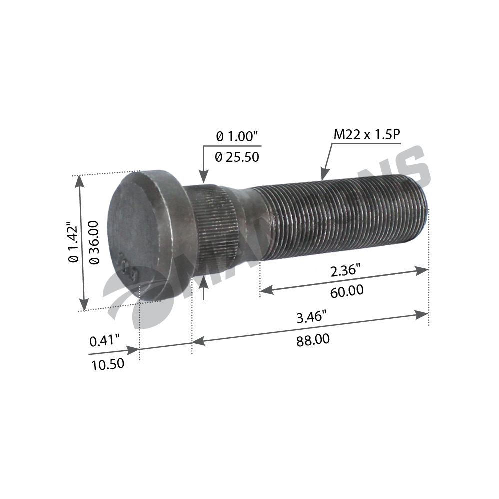 900.013 MANSONS шпилька ступицы колеса !M22x1.5x98/88\ Volvo FH12/FH16/FM9/FM12/FM13