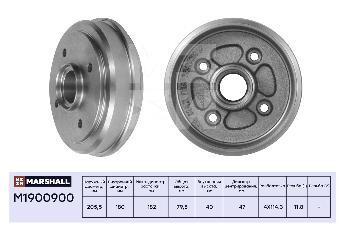 M1900900 MARSHALL Тормозной барабан задн. Chevrolet Spark II 05- Daewoo Matiz 05- M1900900