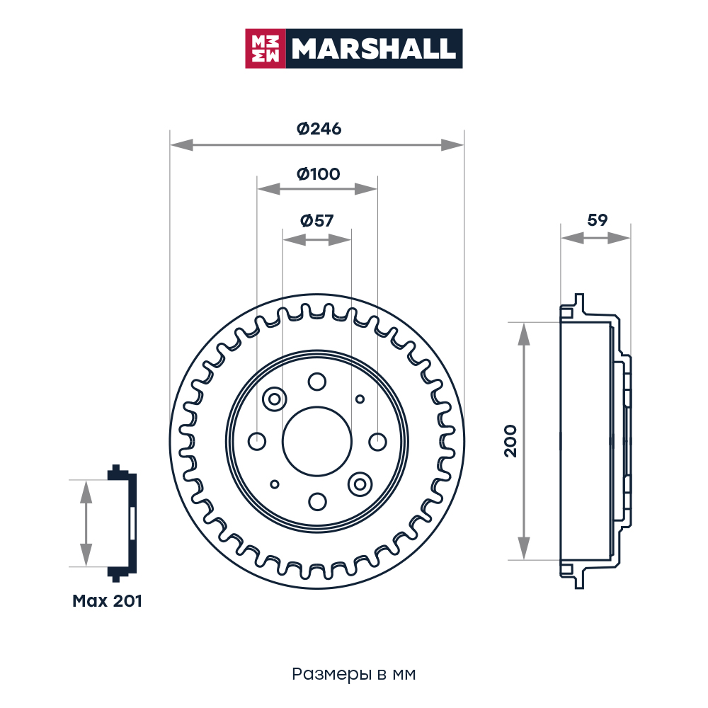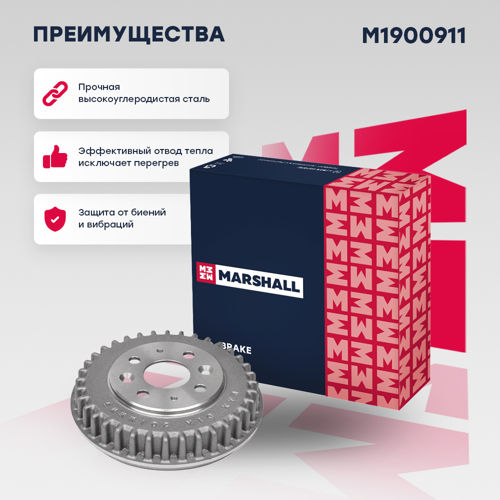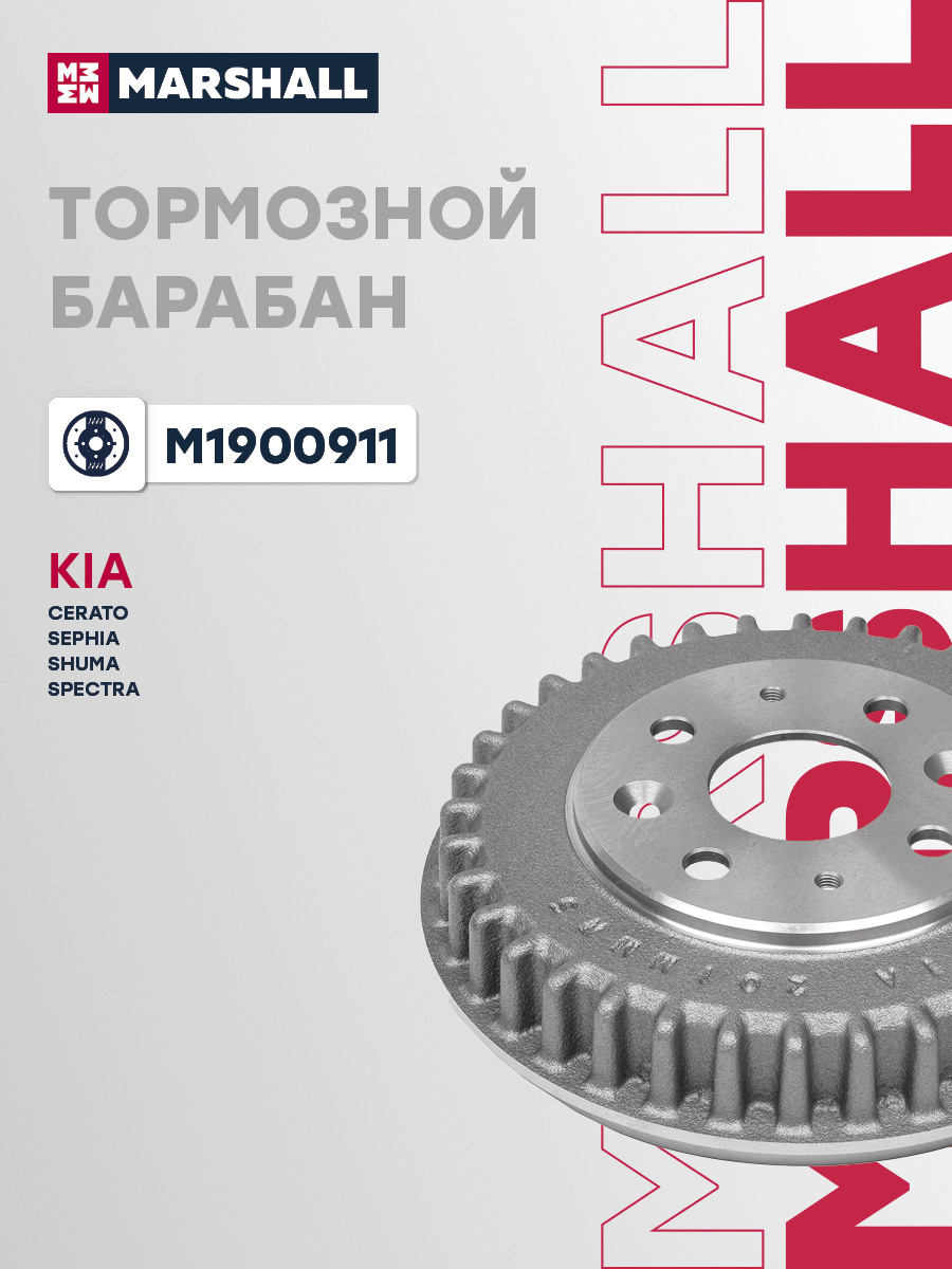 M1900911 MARSHALL Тормозной барабан задн. Kia Cerato I 01- Spectra I 04- Sephia I 95- Shuma I I