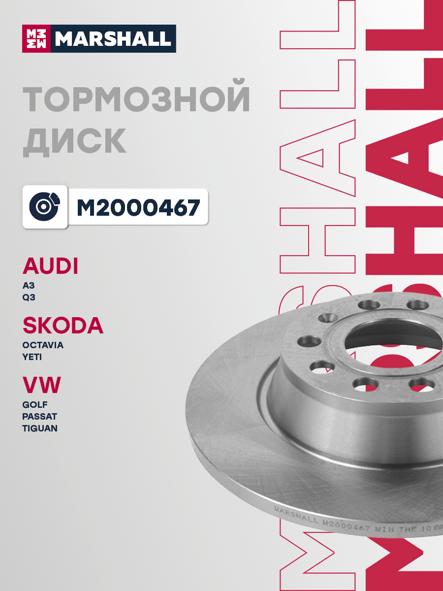 M2000467 MARSHALL Тормозной диск задн. Skoda Octavia II A5 05- VW Golf V VI 03- Passat B6 B7 05-