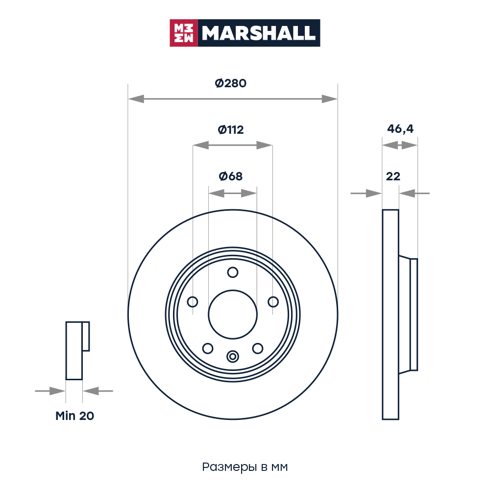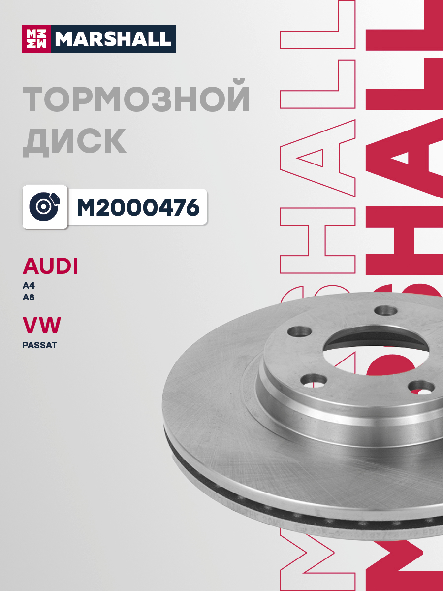 M2000476 MARSHALL Тормозной диск передн. Audi A4 B5-B7 94- A8 D2 D3 96- VW Passat B5 96- M2000476