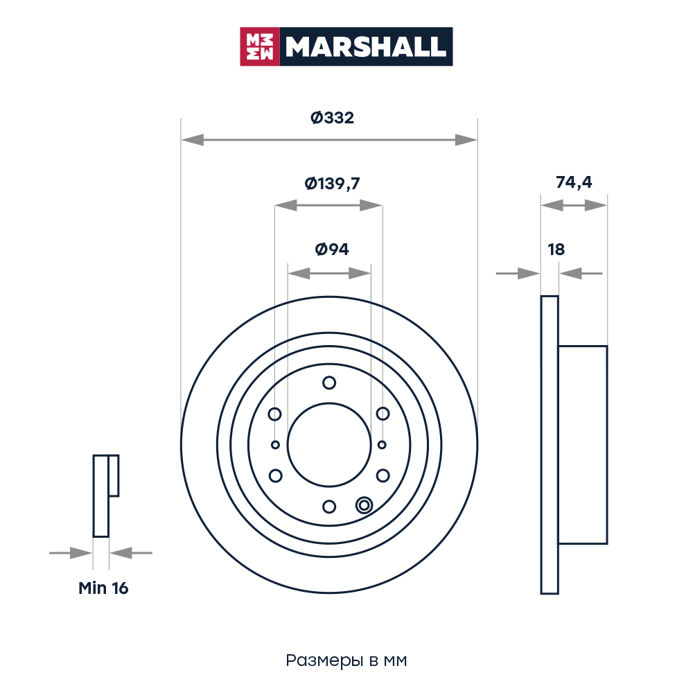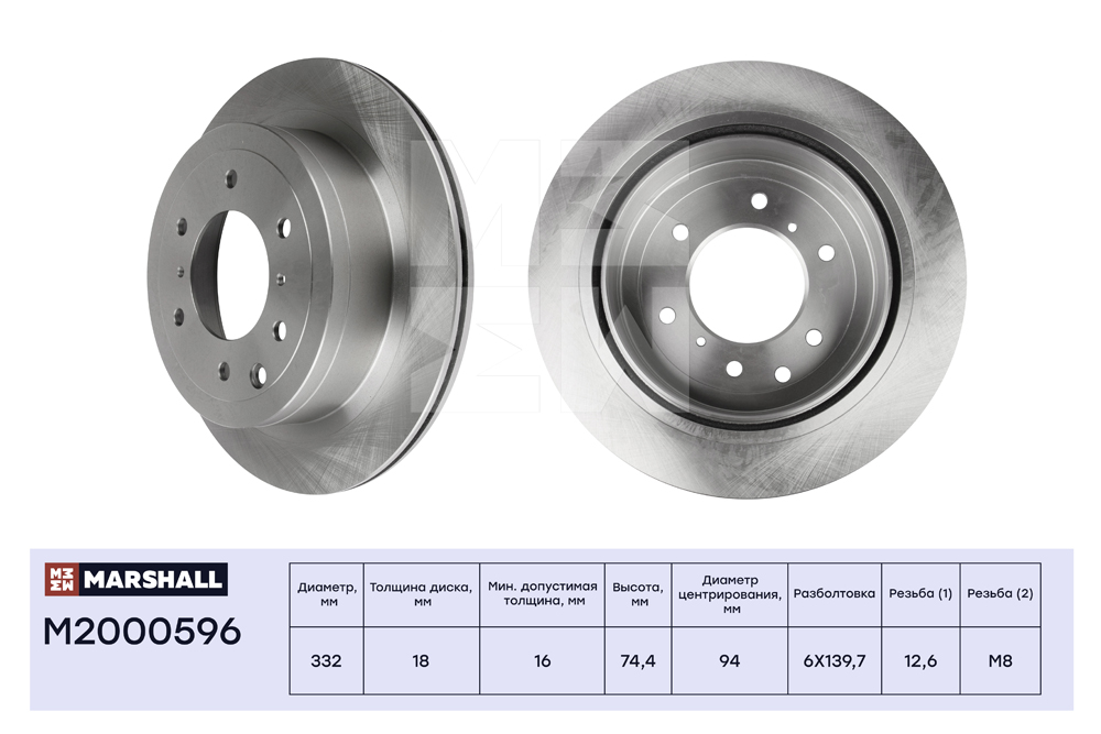M2000596 MARSHALL Тормозной диск задн. Mitsubishi Pajero IV 06- M2000596
