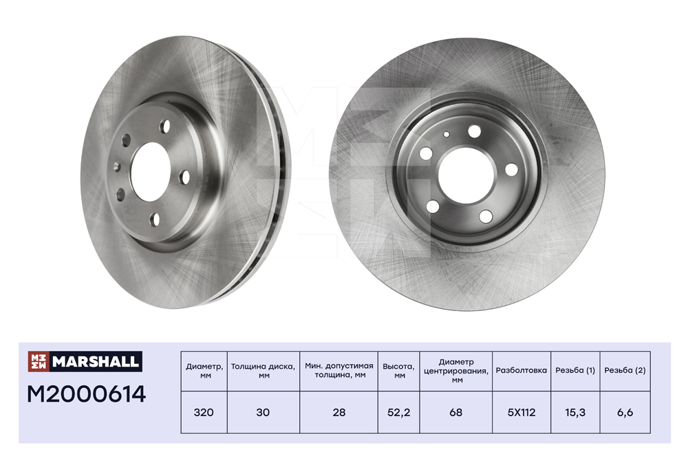 M2000614 MARSHALL Тормозной диск передн. Audi A4 B8 07- A5 8T 07- A6 C7 10- A7 4G 10- Q5 8R 08