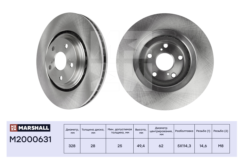 M2000631 MARSHALL Тормозной диск передн. Toyota Highlander II III 08- RAV4 IV 12- Lexus RX III 08