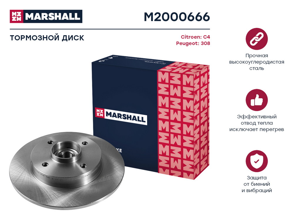 M2000666 MARSHALL Тормозной диск задн. с подшип. и кольц. ABS Citroen C4 II 09- Peugeot 308 I 07-