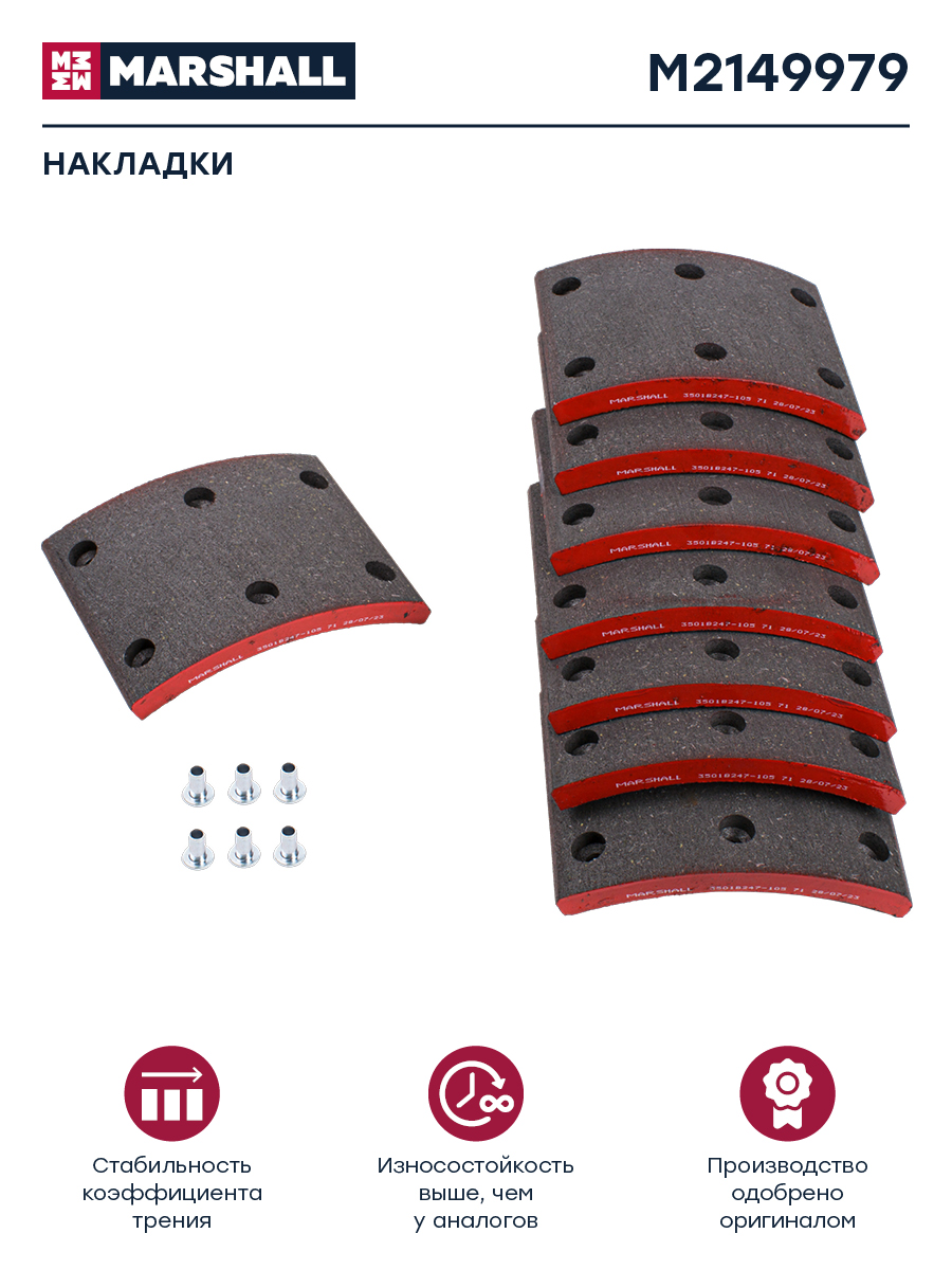 M2149979 MARSHALL Накладка тормозной колодки JAC N120 (20-) КАМАЗ Компас-12 передние сверл.к-т 8шт