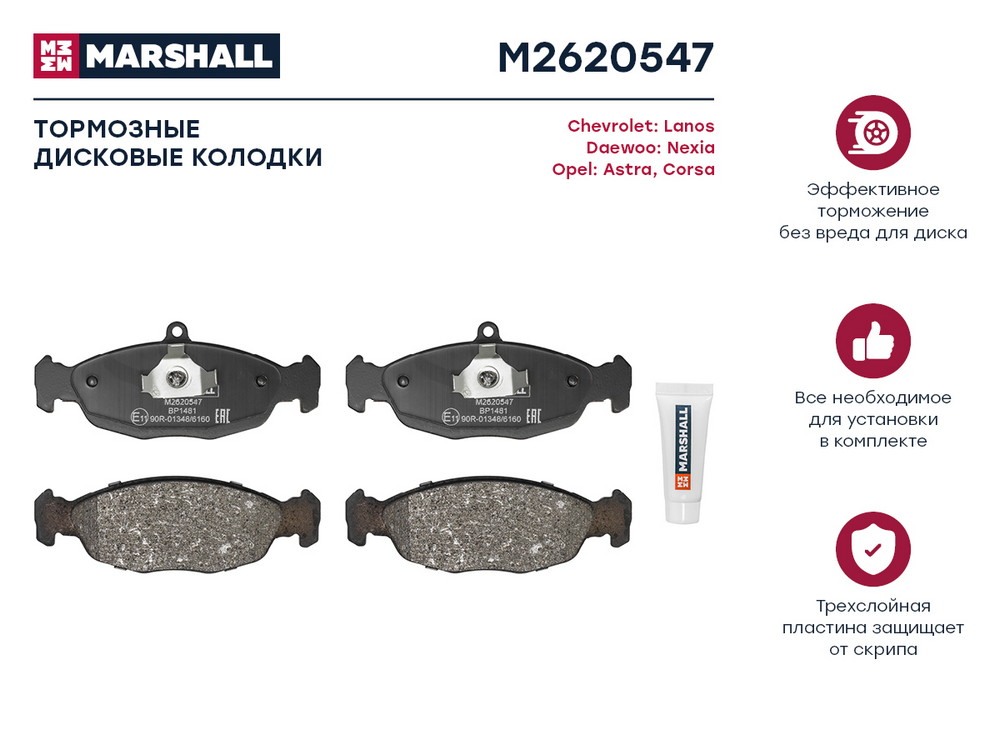 M2620547 MARSHALL колодки дисковые передние!\ Opel Vectra A/Astra F 1.4i-1.8i/1.7D/TD 91-98