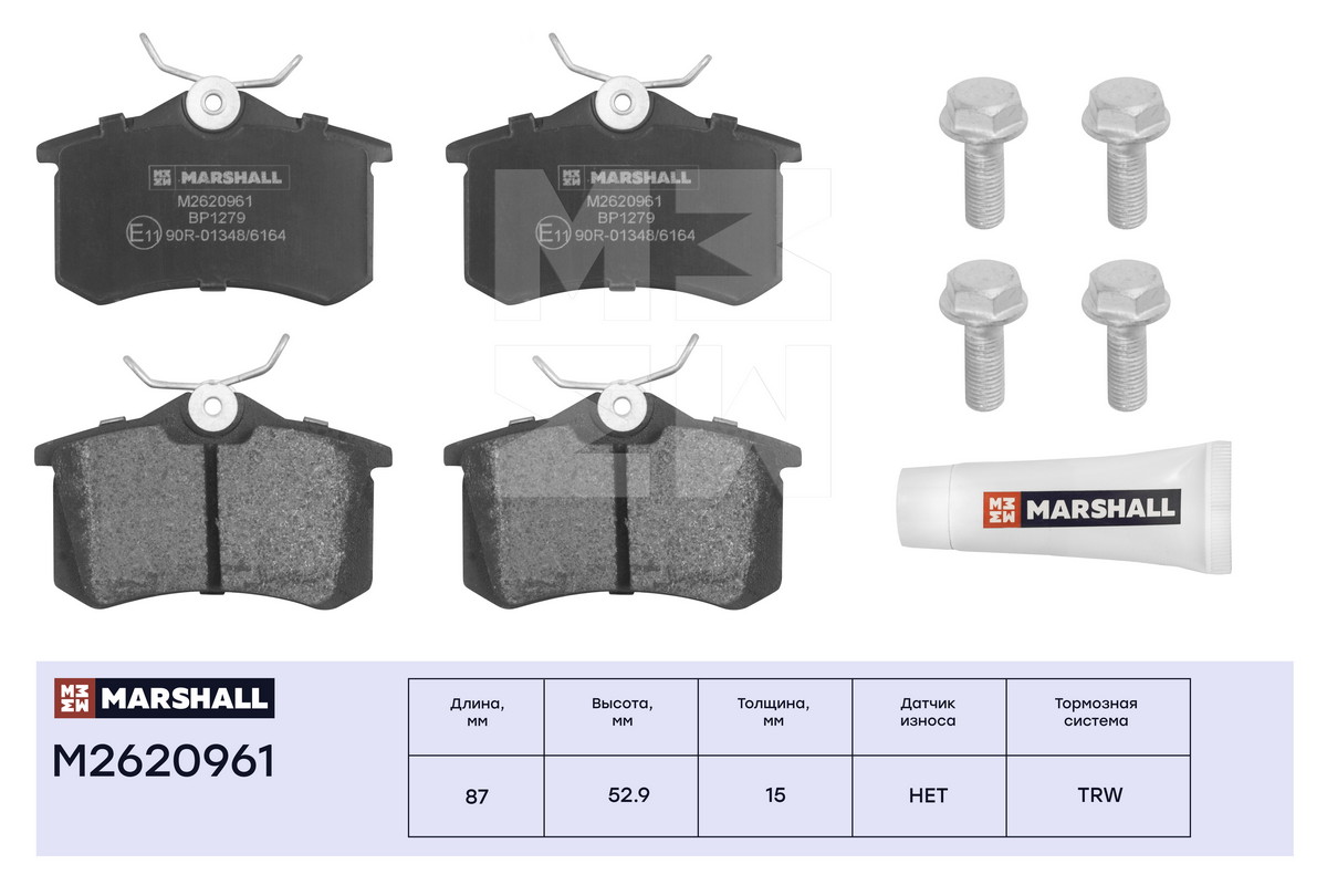 M2620961 MARSHALL Торм. колодки дисковые задн. Audi A4 B6 B7 00- A6 C5 97- VW Golf II-IV 83- Pas