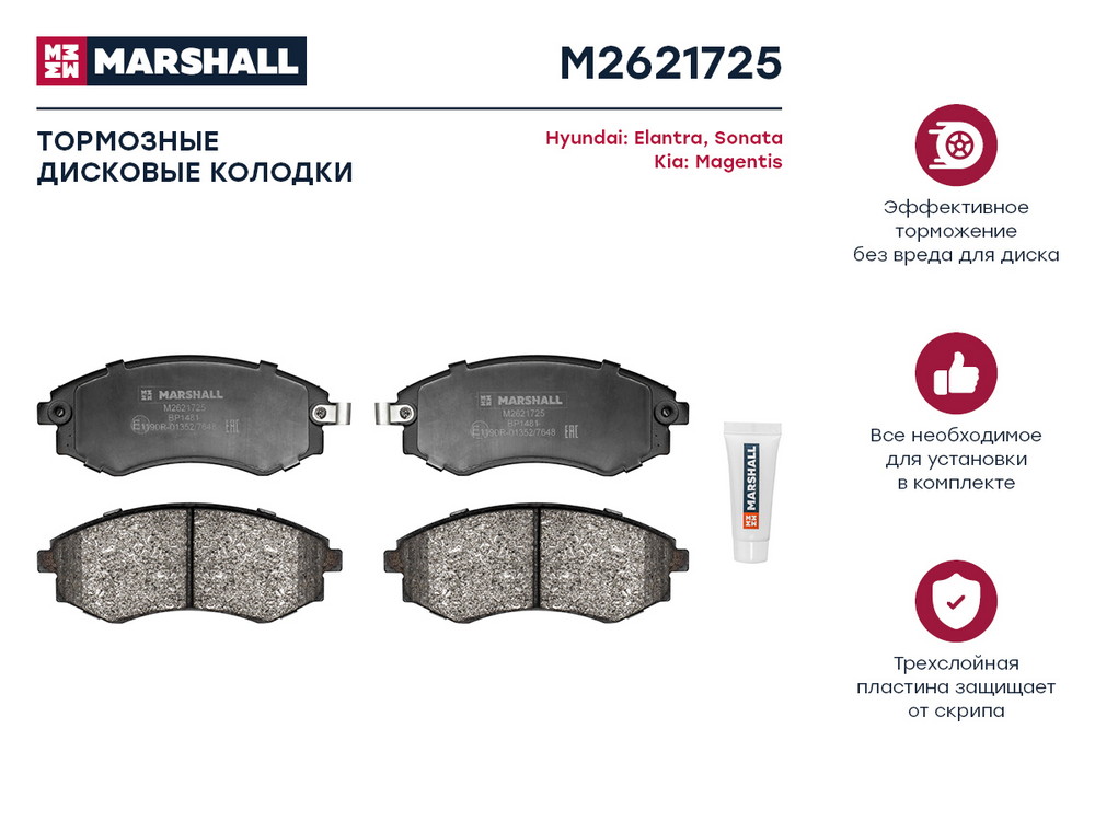 M2621725 MARSHALL Торм. колодки дисковые передн. Hyundai Elantra III 00- / Sonata II-IV 88- (+ТагА