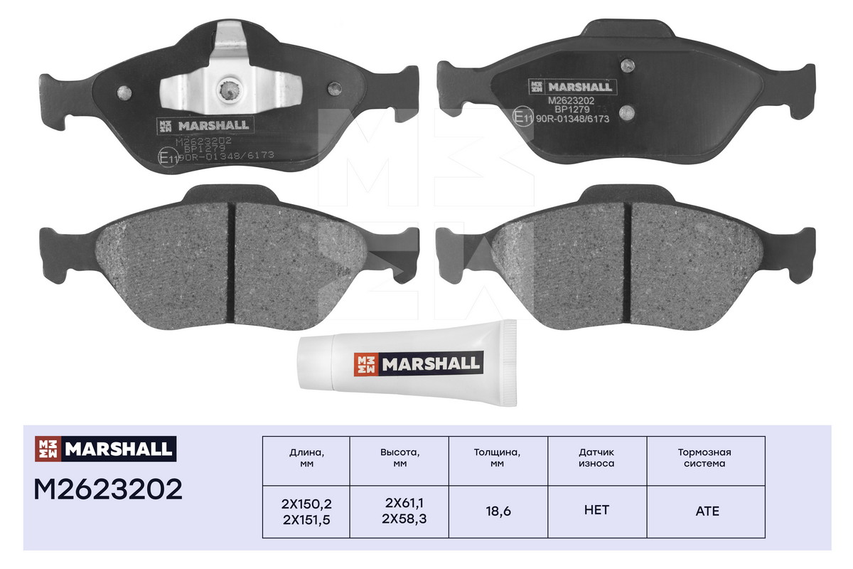 M2623202 MARSHALL Торм. колодки дисковые передн. Ford Fiesta IV V 95- Fusion 02- Mazda 2 I 03- 1