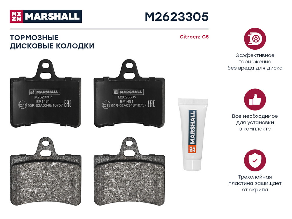 M2623305 MARSHALL Торм. колодки дисковые задн. Citroen C5 I II 01- M2623305