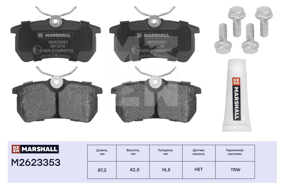 M2623353 MARSHALL Торм. колодки дисковые задн. Ford Fiesta VI 09- Focus I 98- M2623353