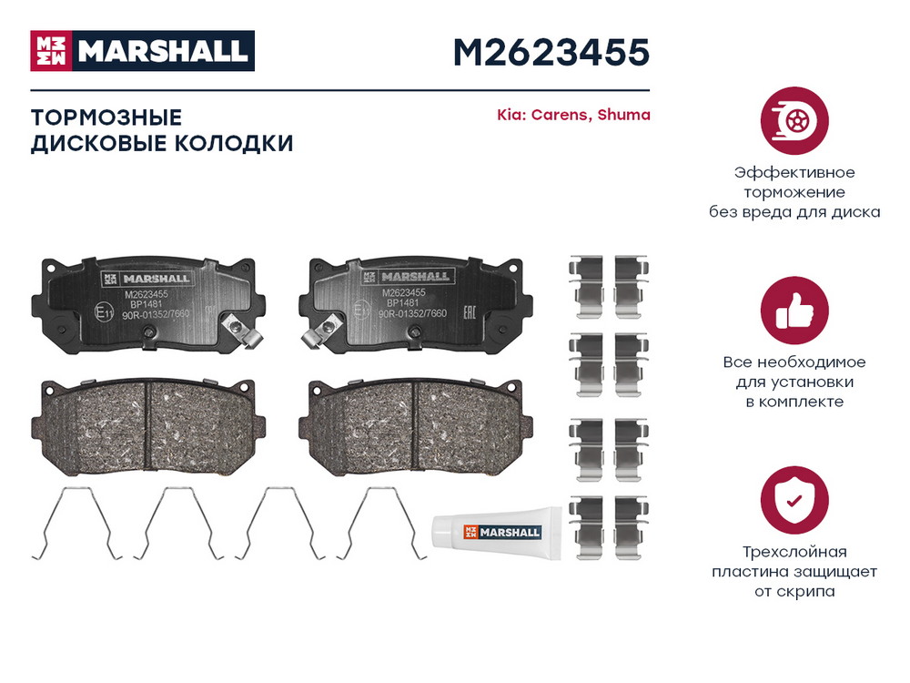 M2623455 MARSHALL Торм. колодки дисковые задн. Kia Carens I 00- Shuma I II 96- M2623455